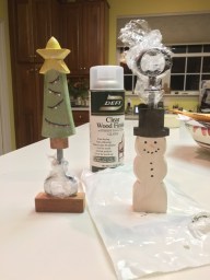 I kept making different shapes and trying different approaches to making the bottle openers using simple approaches. The following two actually did use the lathe to provide the body shape, but could have been done with a scroll or band saw (or any other curve cutting saw). The focus on these two is really on Christmas – so I used the basics for the idea – a snow man and a tree.