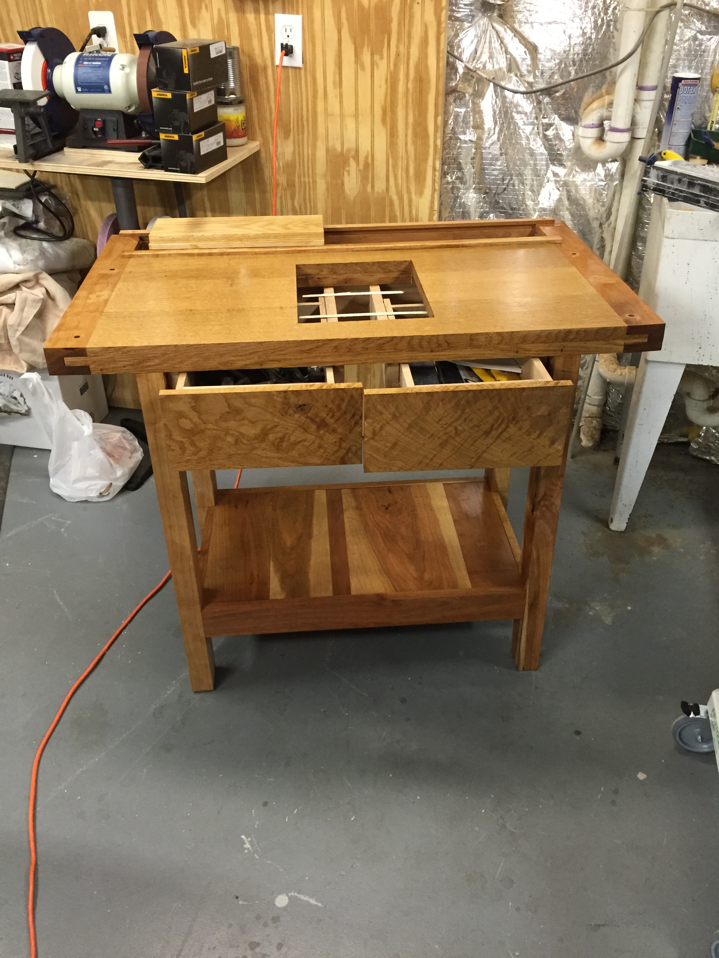 I had built the primary parts of the sharpening station with white oak due to it’s natural resistance to water and such, and then used cherry for the frame and bottom shelf parts. But it turns out that I spray water more than I should, so I did go back and add two finishing changes. The edges were (finanlly) relaxed by knocking the edges over with a quick planing. And I used some waterlox (two coats) to the wood to ensure that water would not be absorbed in any of the exposed end grains that were exposed!