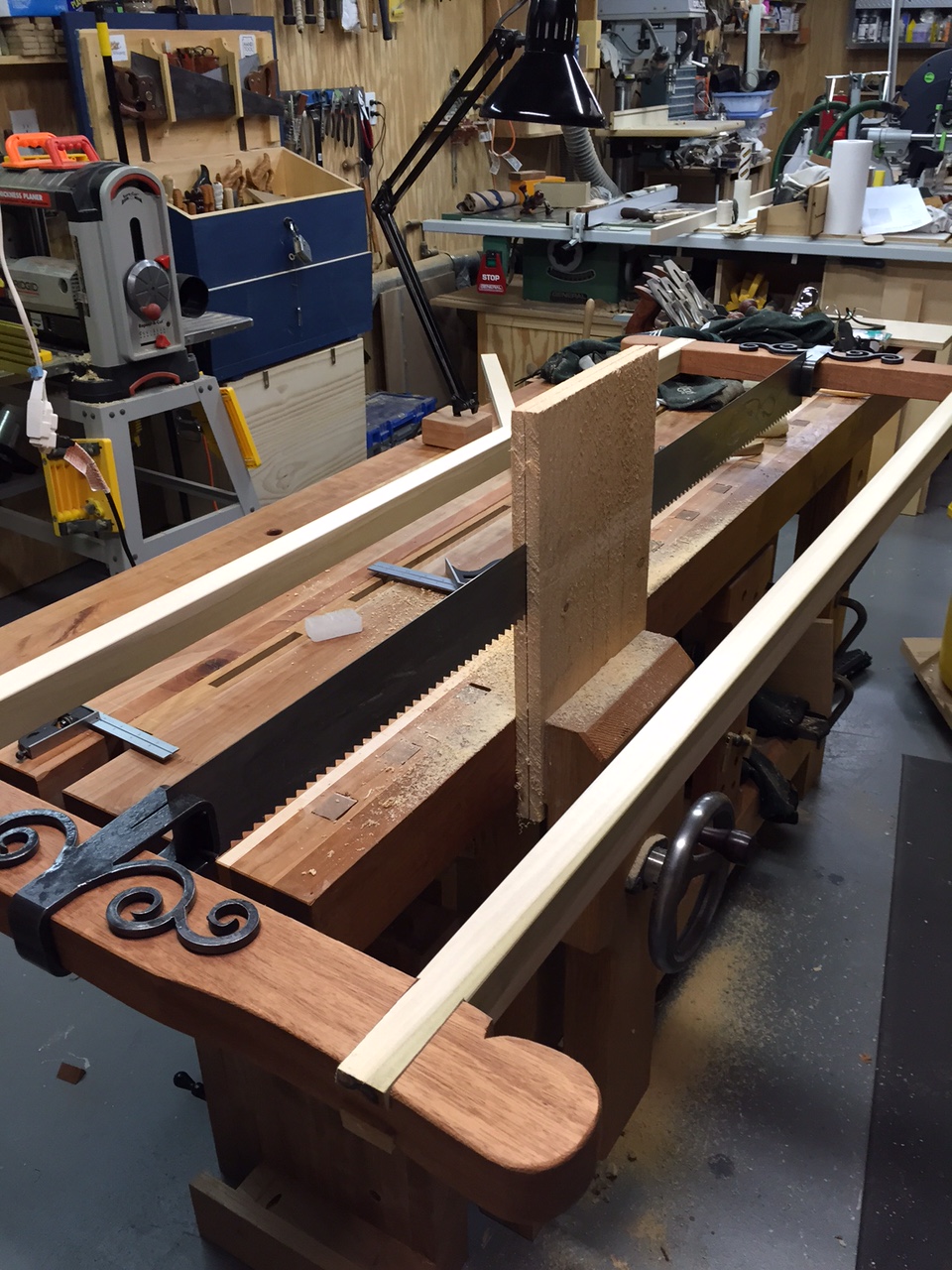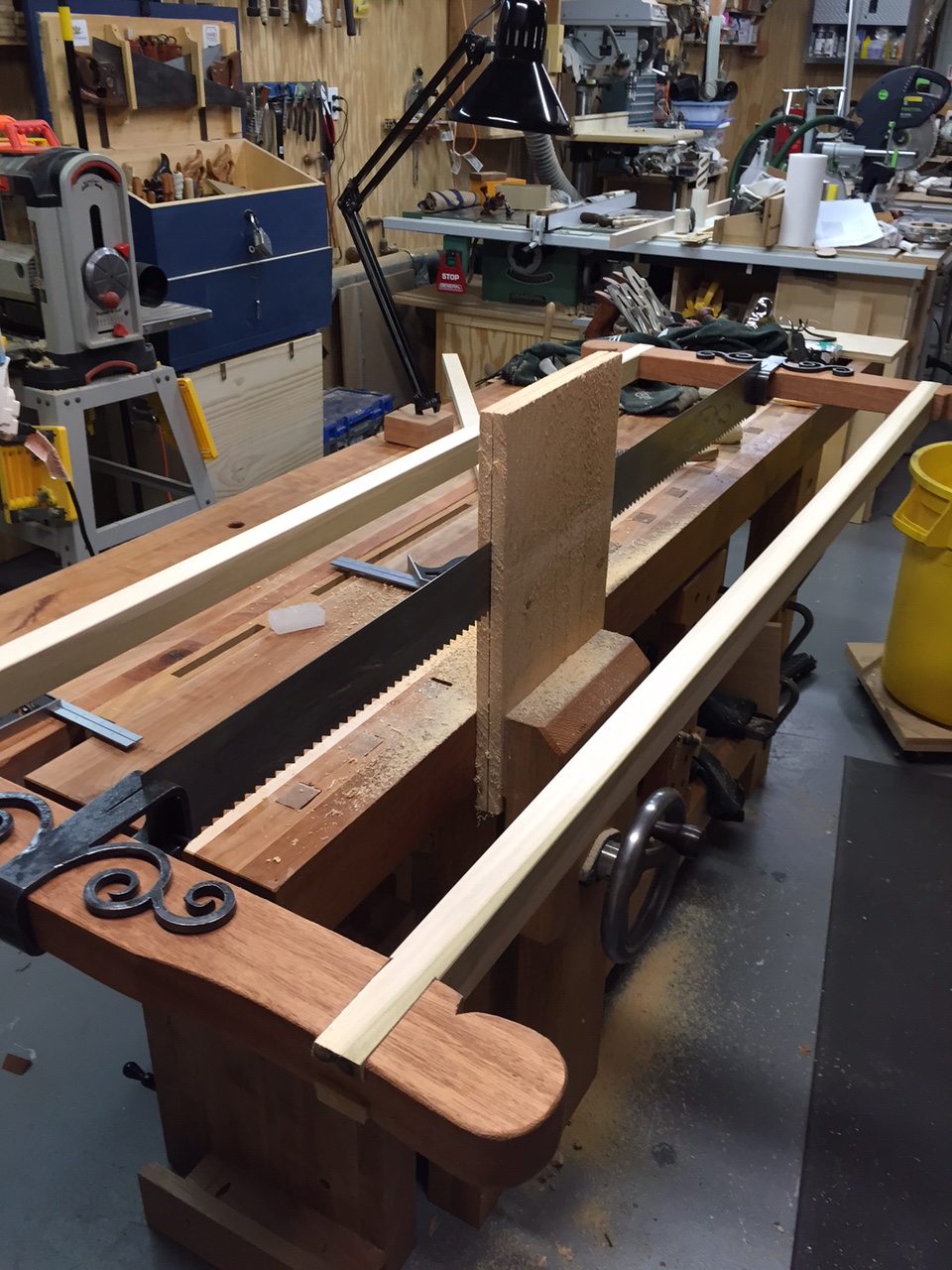 With both sides cut and fit I’m half way through the assembly of the frame. The width of the end piece is 2′, so this is a sizable chunk of frame.