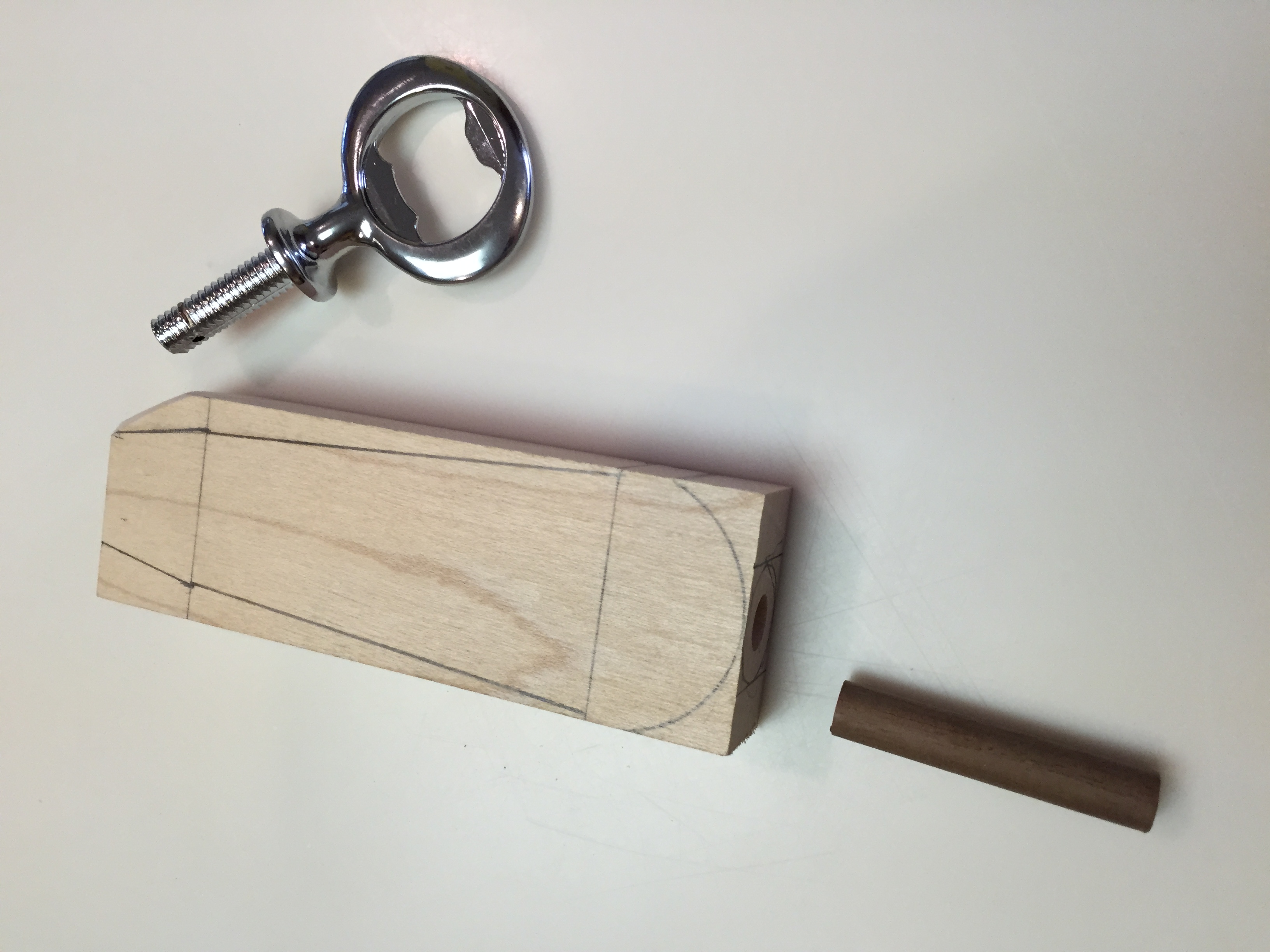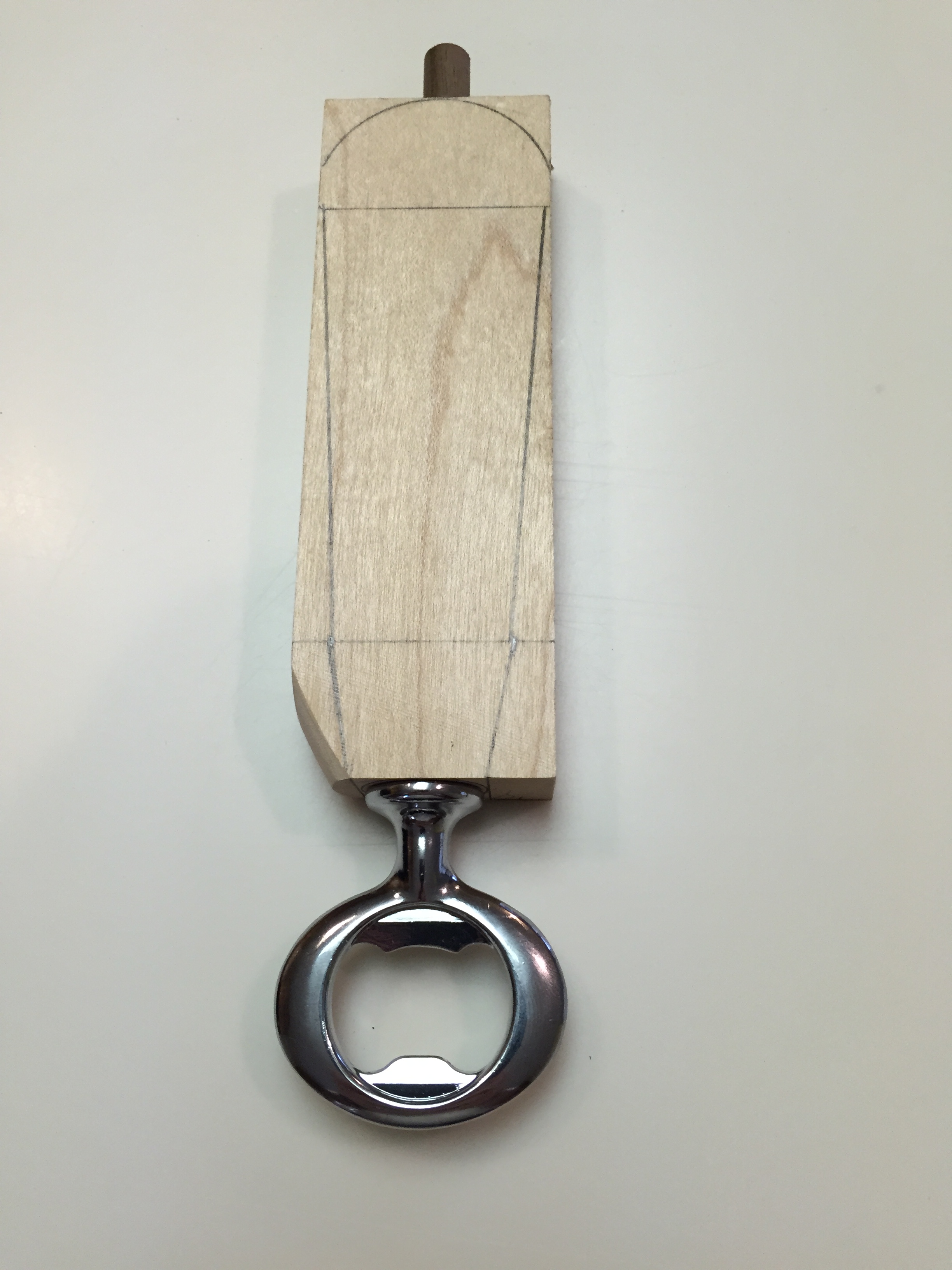 couple of the bottle opener kits from Woodcraft a while back, and intended to turn some quick handles to make the openers available within the family parties. However, something occurred to me when working on the re-saw – how nice an easy “shaping” the wood for the handle was using just a rasp and spokeshave. And I started to think – what if I just wanted flat handle on the opener, rather than a fully round one?